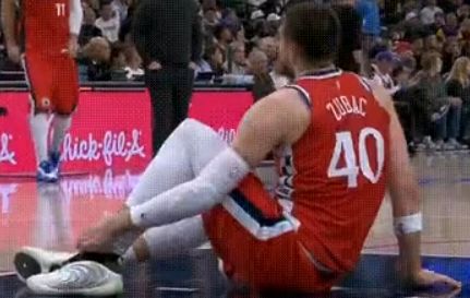 祖巴茨是在近日结束的快船103-88湖人同城德比中受伤,首节末抛投后落地时不幸踩到詹姆斯从而扭伤了自己的脚踝。